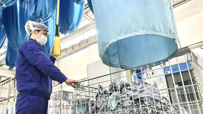 據(jù)他介紹,一方面,一般普通的臟污織物所經(jīng)歷的消毒包含洗滌過程中的化學(xué)消毒和濕熱消毒,以及干燥過程中的干熱消毒,通過利用隔離式洗衣機洗滌,幾輪化學(xué)加物理消毒下來,可以保障織物的清潔衛(wèi)生程度。對于重度污染的織物,甚至是感染性織物,消毒方式就更加嚴(yán)格了,無論從消毒劑的用量上,還是洗滌烘干的溫度上,都作了嚴(yán)的把控,以確保消毒質(zhì)量。
